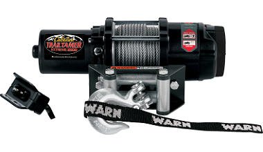Big on power and value, this Trail Tamer has 2,500 lbs. of pulling power to pull big game out of the field or winch an ATV out of the muck. 50 ft. of 3/16" wire rope. Powerin, powerout freespooling clutch. Dynamic brake. Handlebarmounted minirocker switch. Roller fairlead. Oneyear manufacturer's warranty. Made for utility ATVs 350cc and larger. Weight: 14.8 lbs.